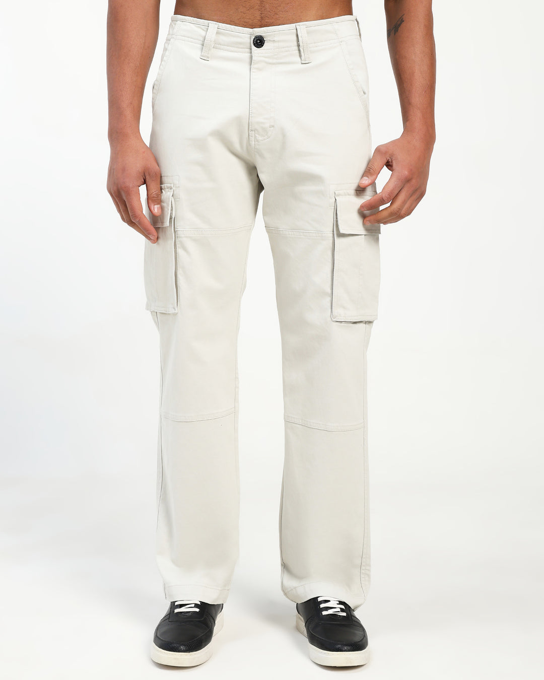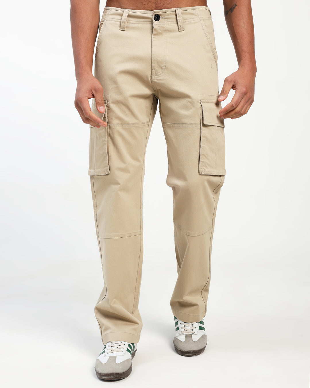 Men’s Beige Straight Fit Cargo Pants with Utility Pockets