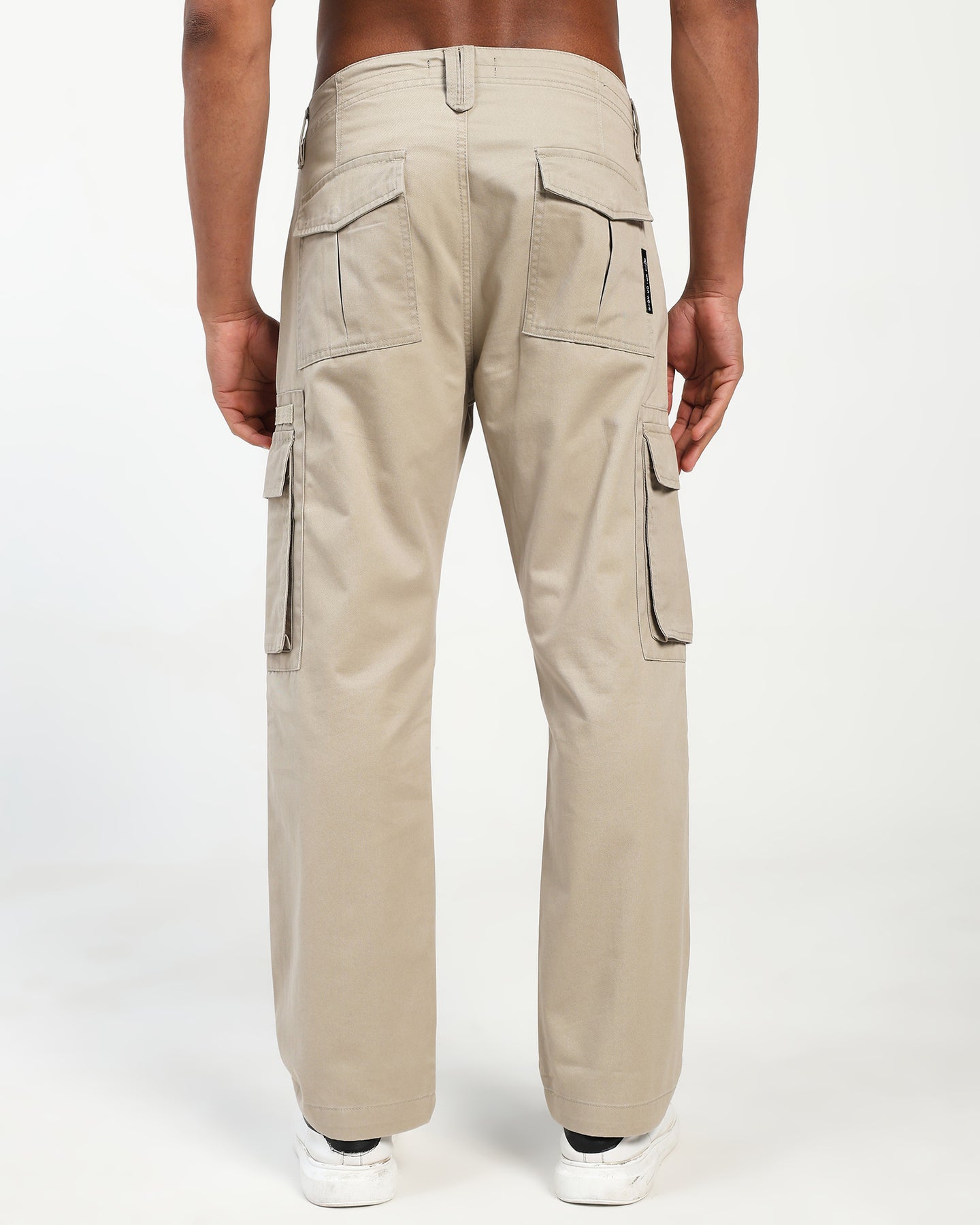 Men’s Beige Straight Fit Cargo Pants with Utility Pockets