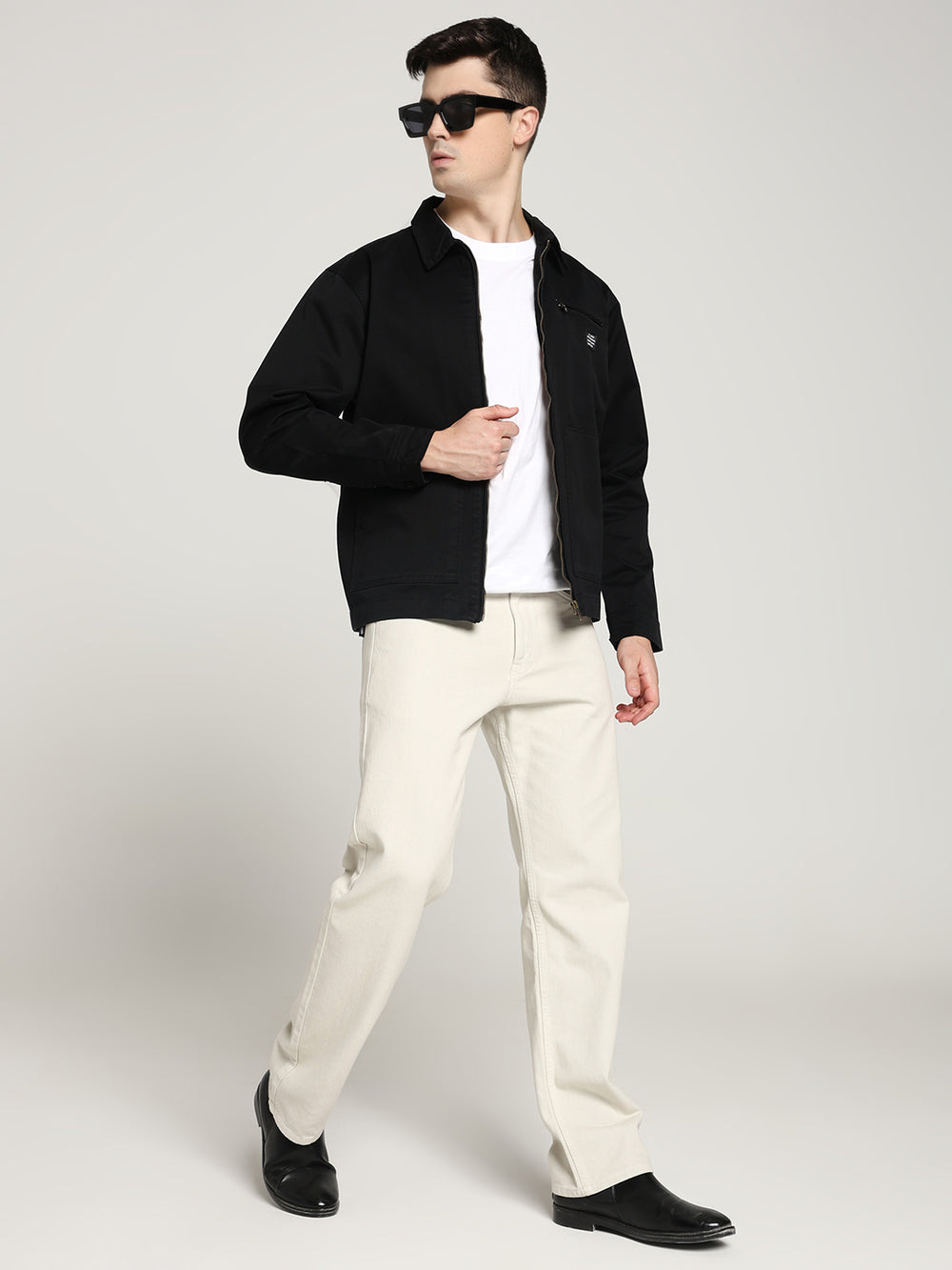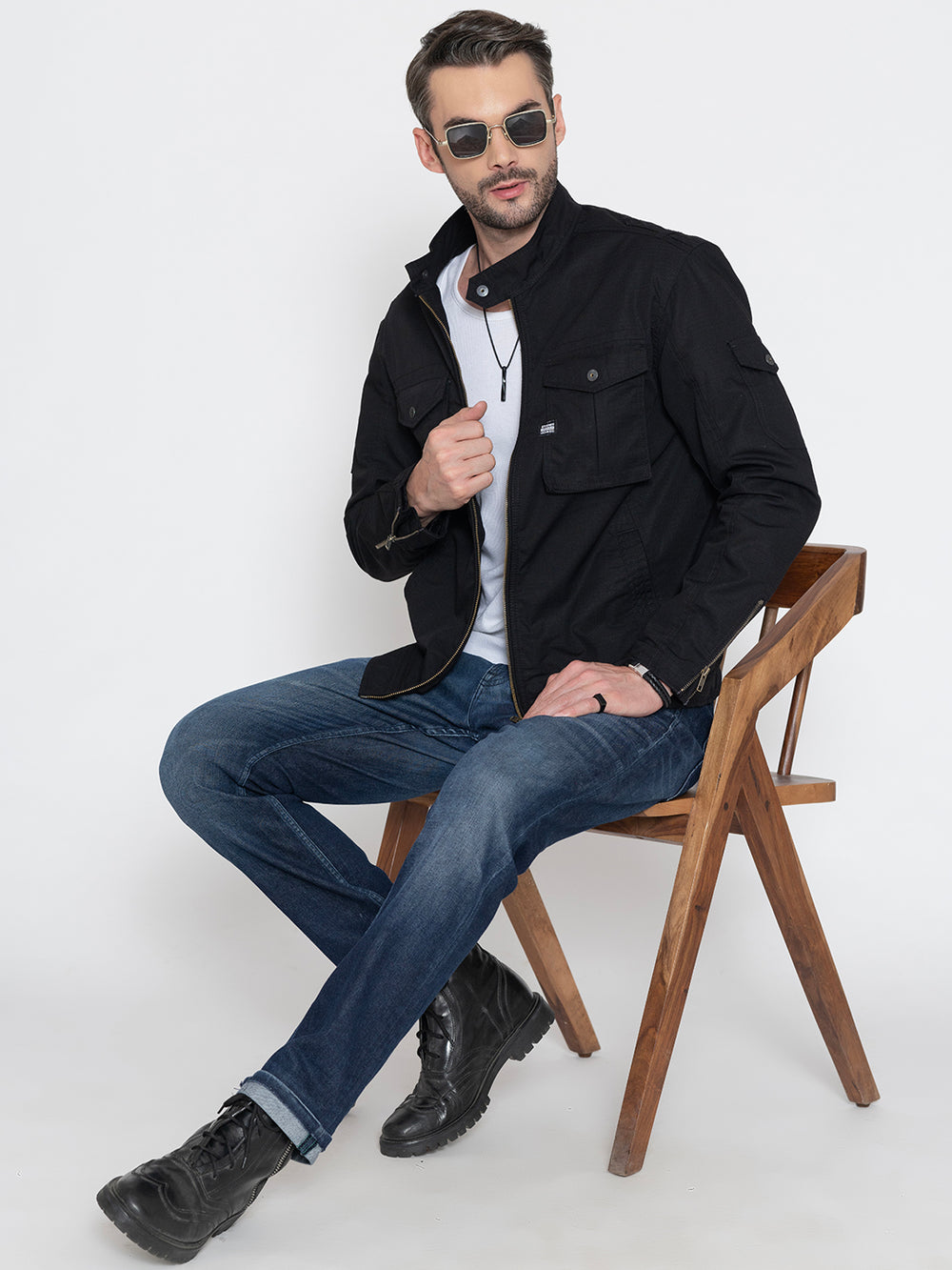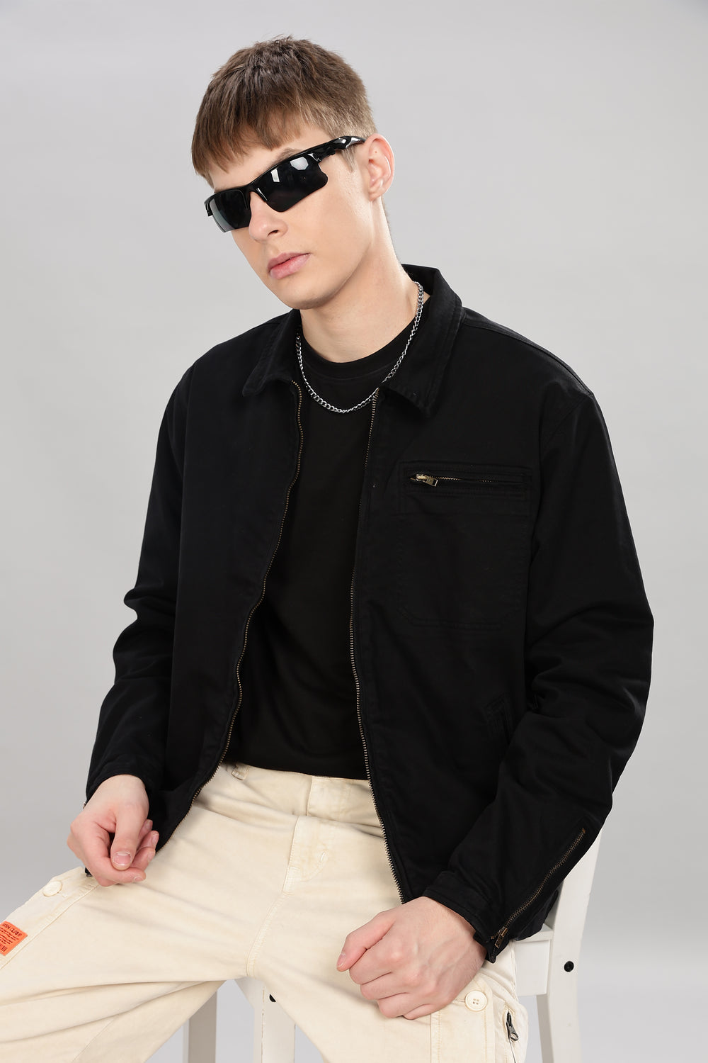 MEN'S BLACK BIKER RIBSTOP FLEECE JACKET.