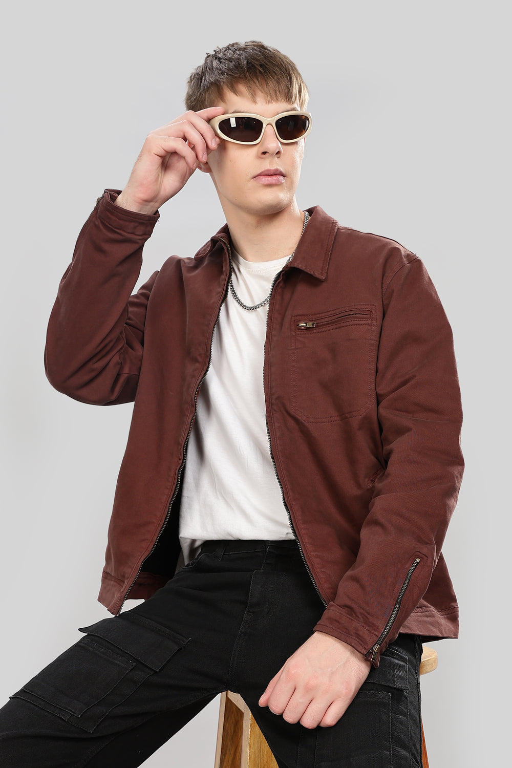 MEN'S BROWN DETACHABLE HOODED JACKET.
