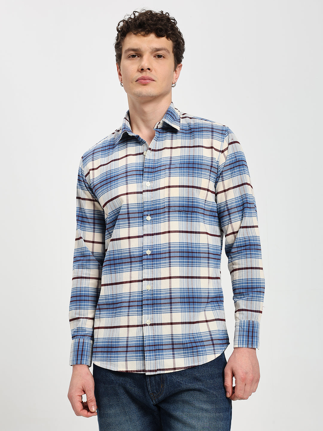 Classic Blue Plaid Design: Stylish check pattern adds a smart and casual vibe